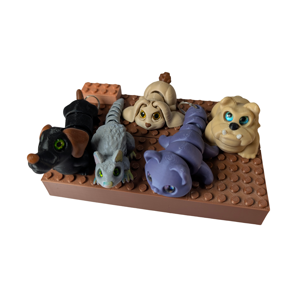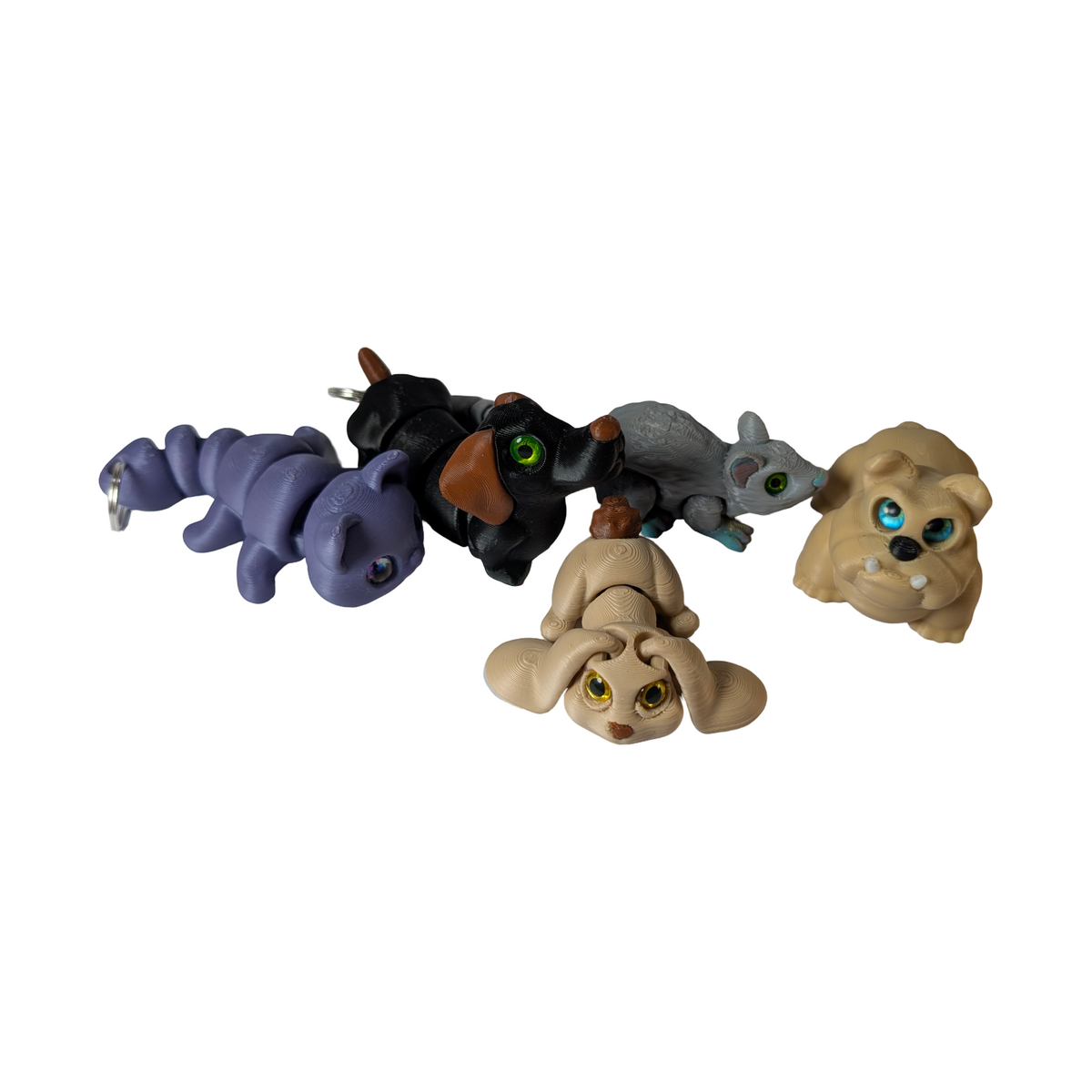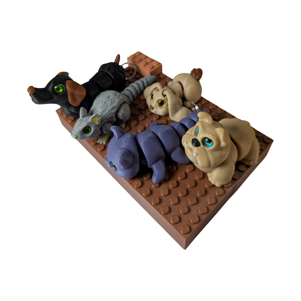 This pets keyring and bag charm multi-pack includes five clearly defined designs: Dachshund, Bulldog, Rat, Cat, and Bunny Rabbit. Each piece is 3D printed in multi-colour PLA with articulated features and hand-applied eyes, giving every little companion its own personality. Supplied as a fixed set, this pack is perfect for animal lovers who want variety without any mystery.