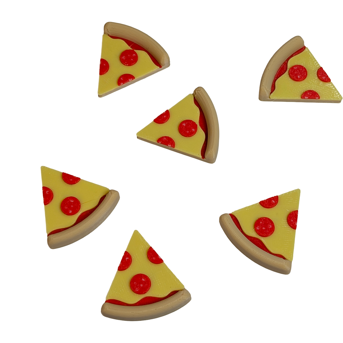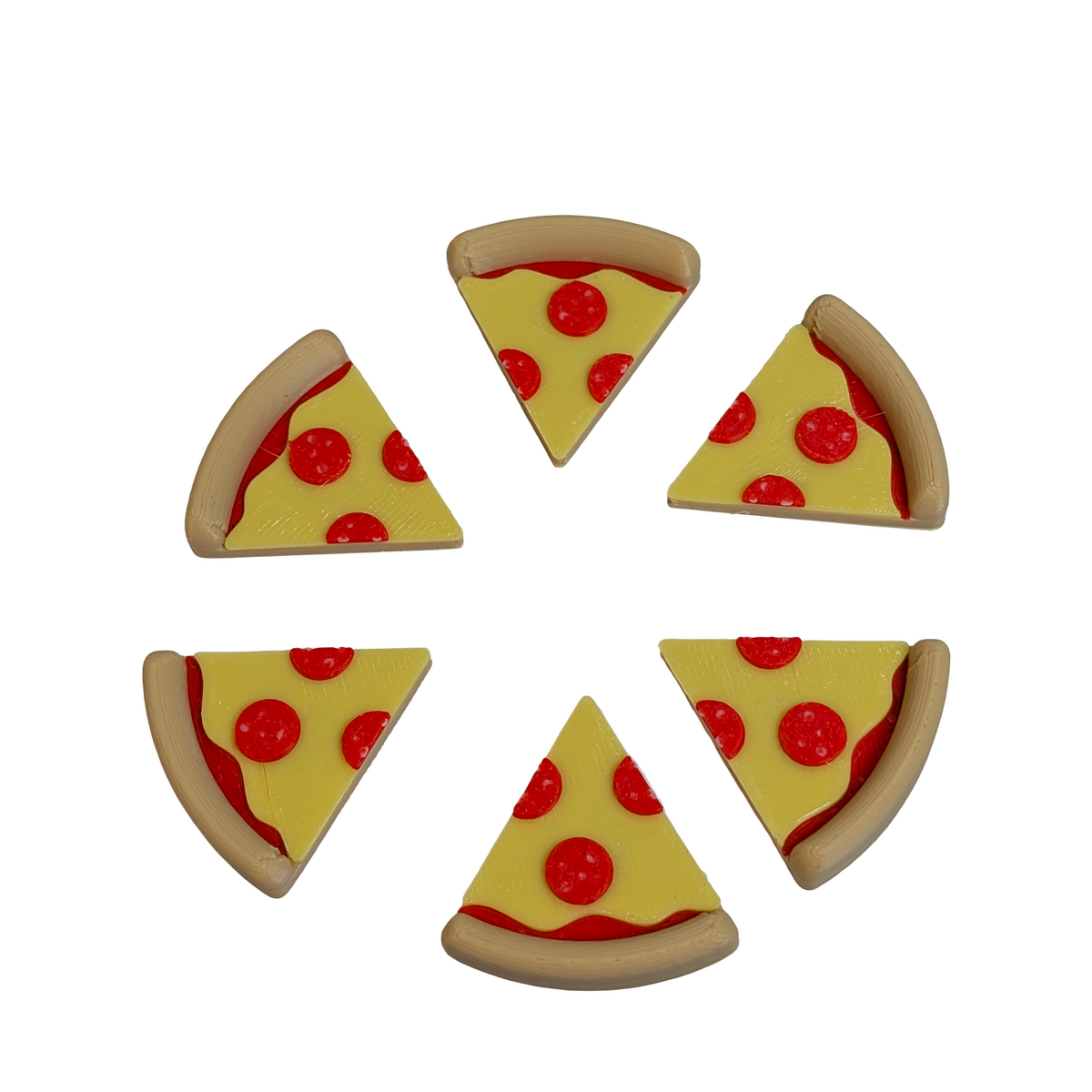 • Set of 6 pizza slice magnets forming a complete pizza when arranged