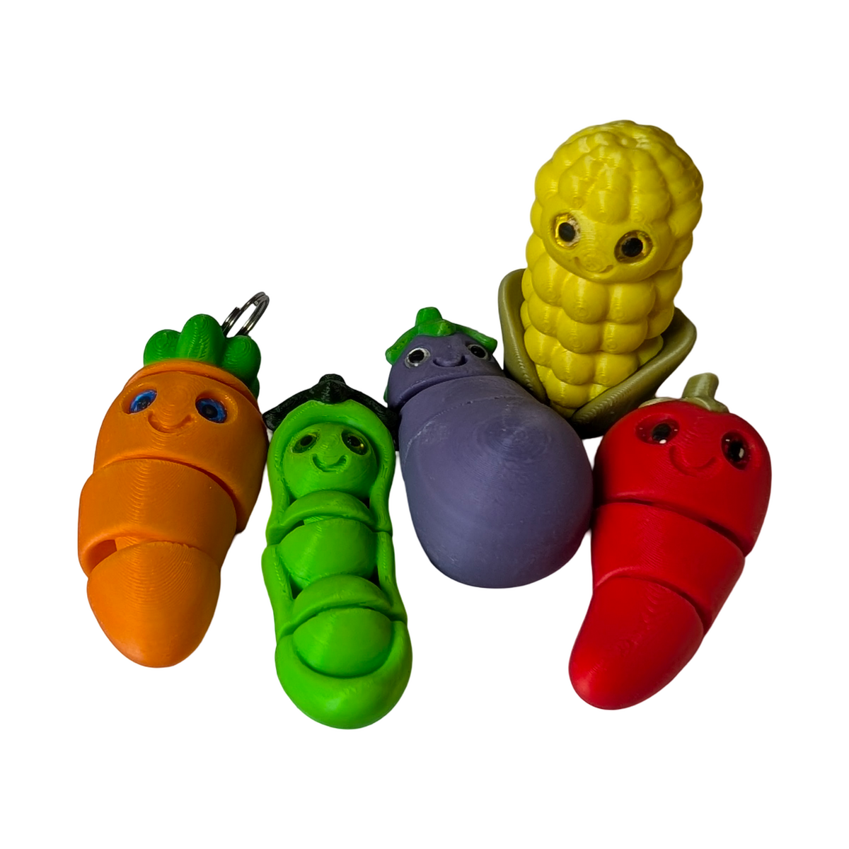 This produce keyring and bag charm multi-pack serves up a fun mix of five clearly defined designs: Carrot, Eggplant, Chili, Pea Pod, and Sweet Corn Cob. Each piece is 3D printed in multi-colour PLA with articulated features and hand-applied eyes, giving these mini produce pals plenty of character. Supplied as a fixed set, so you know exactly what's included-no surprises, just good produce.