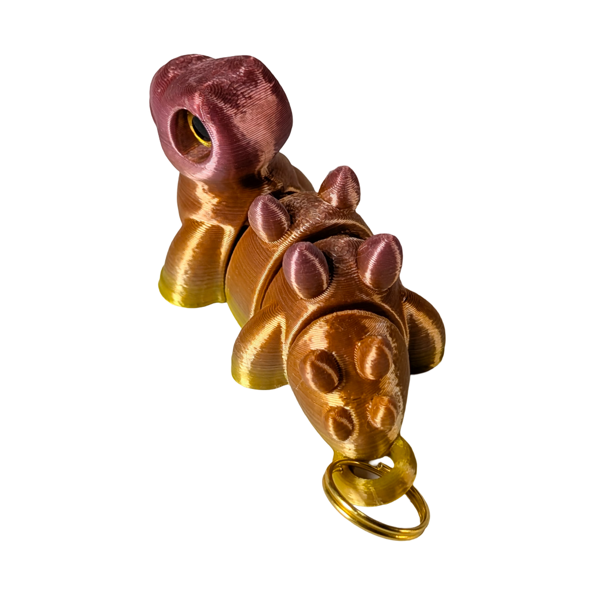 All plates, no panic . This articulated stegosaurus keyring and bag charm is 3D printed in silk PLA with a bright multi-coloured finish and hand-applied eyes. Lightweight and compact, it clips neatly onto keys, backpacks, or everyday bags without weighing you down. A tiny prehistoric companion with a very chill attitude - pointy plates, friendly vibes. From Australia.