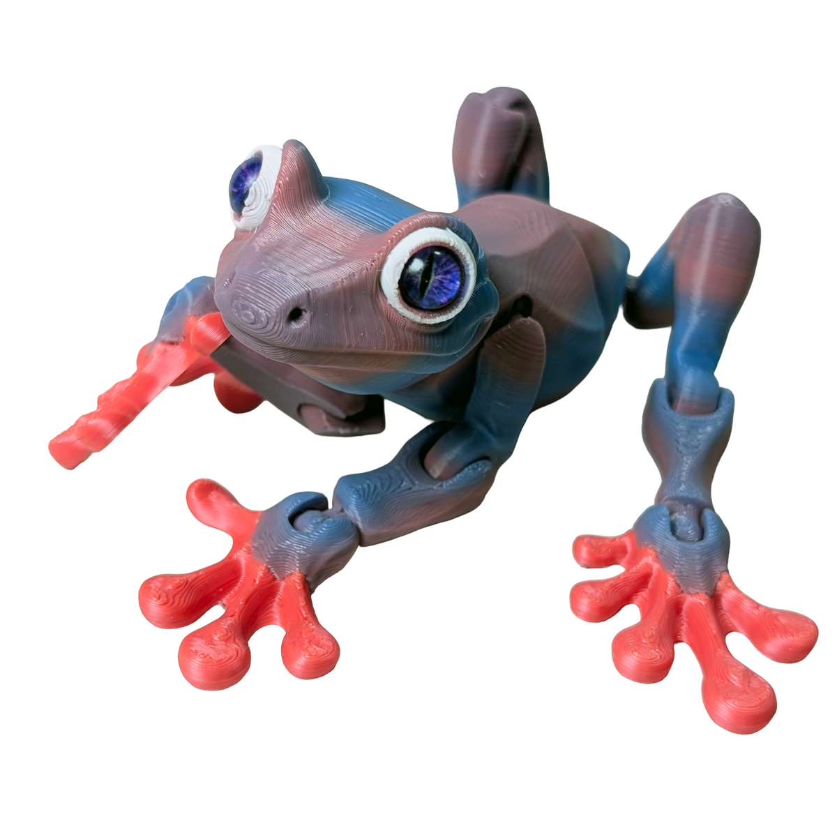 • Large tree frog flexible figure in glossy purple, blue and pink PLA