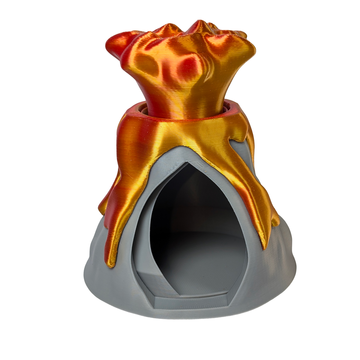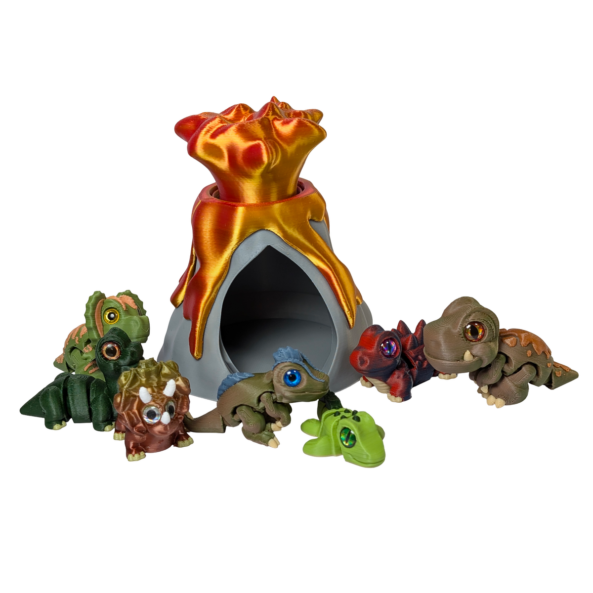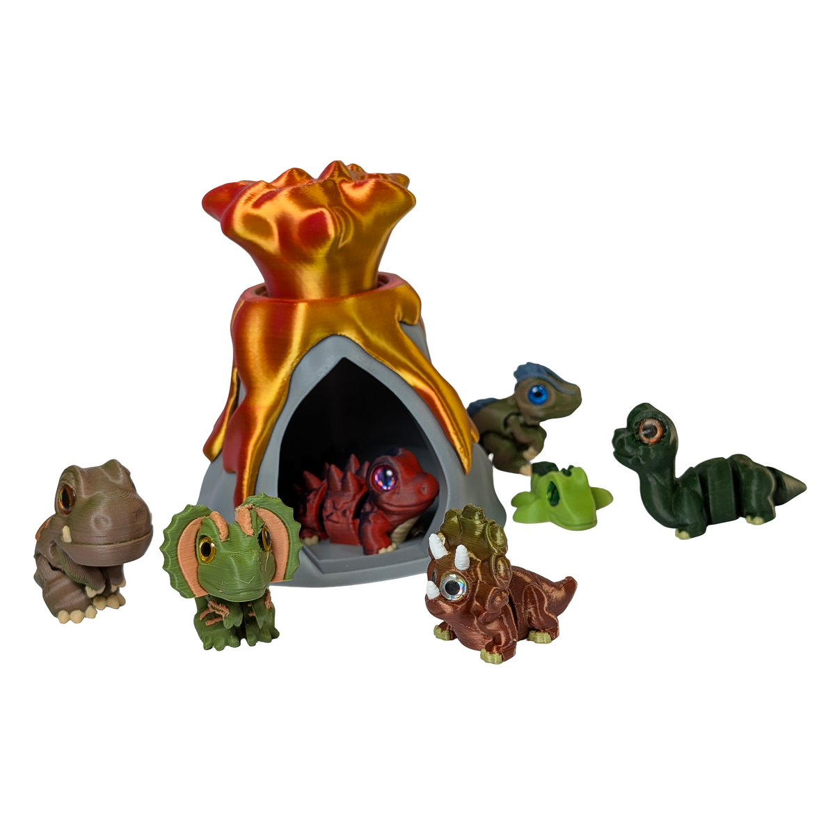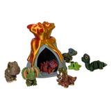 • Miniature dinosaur playset with volcano home and hidden sliding door
