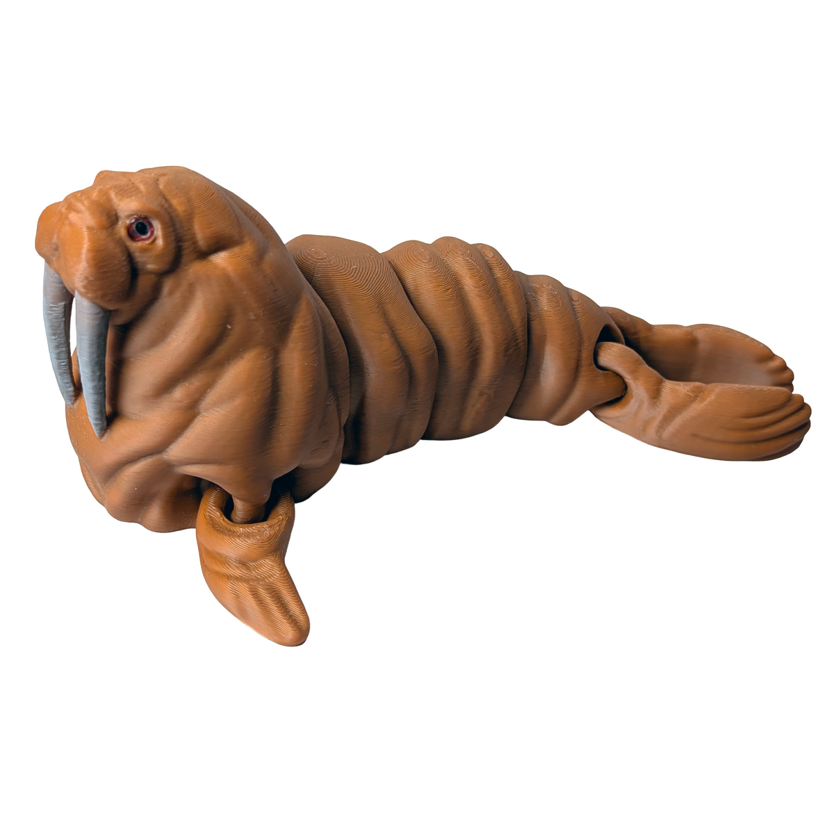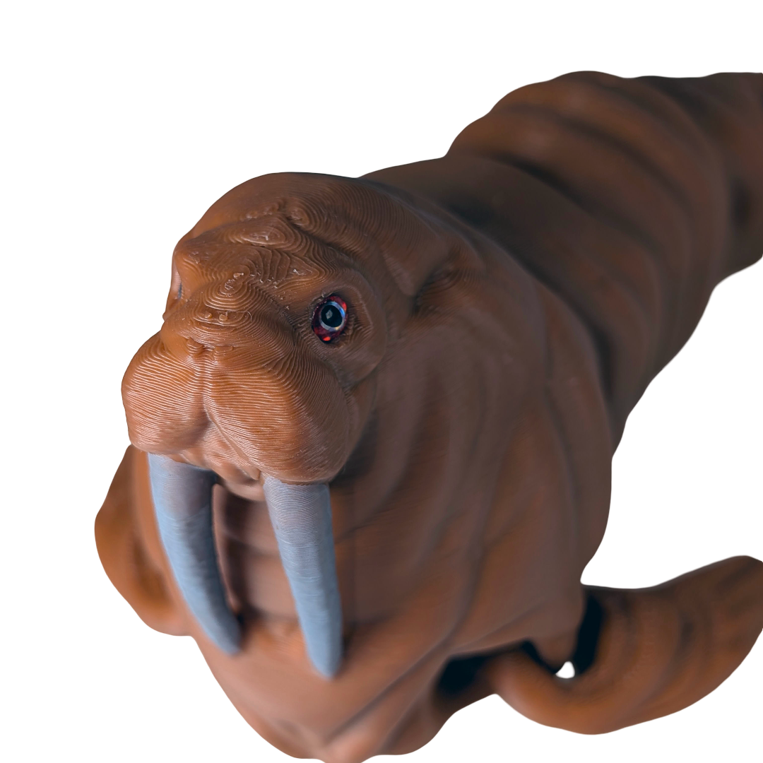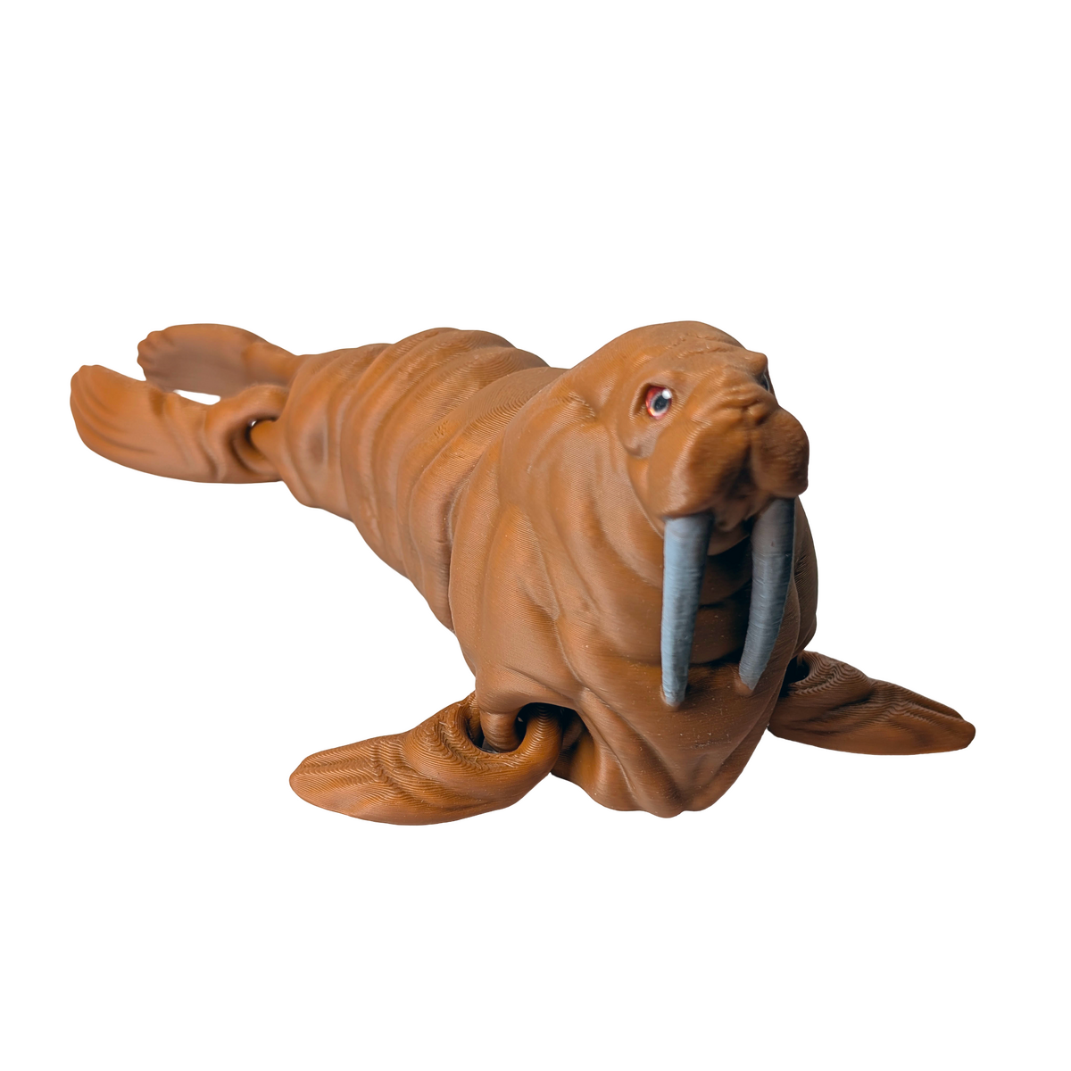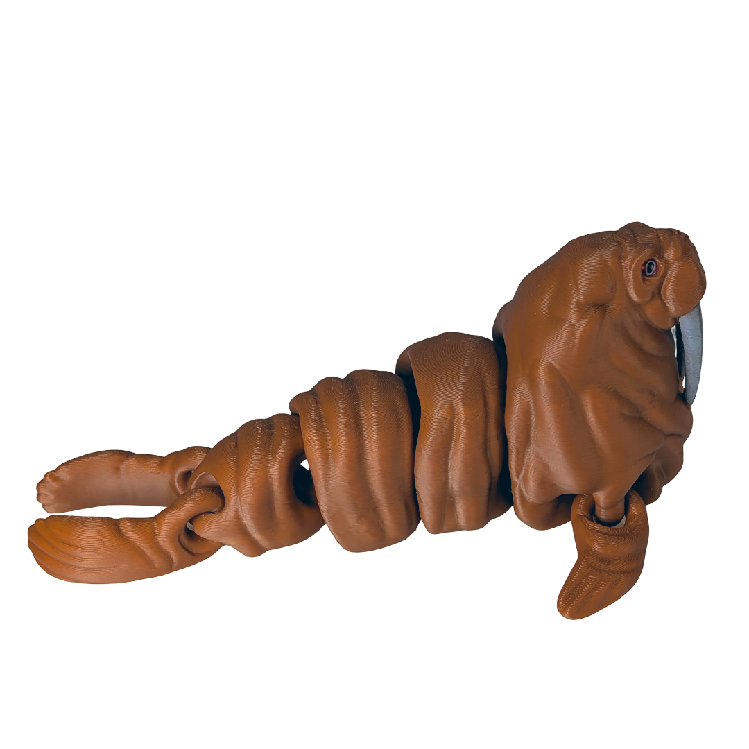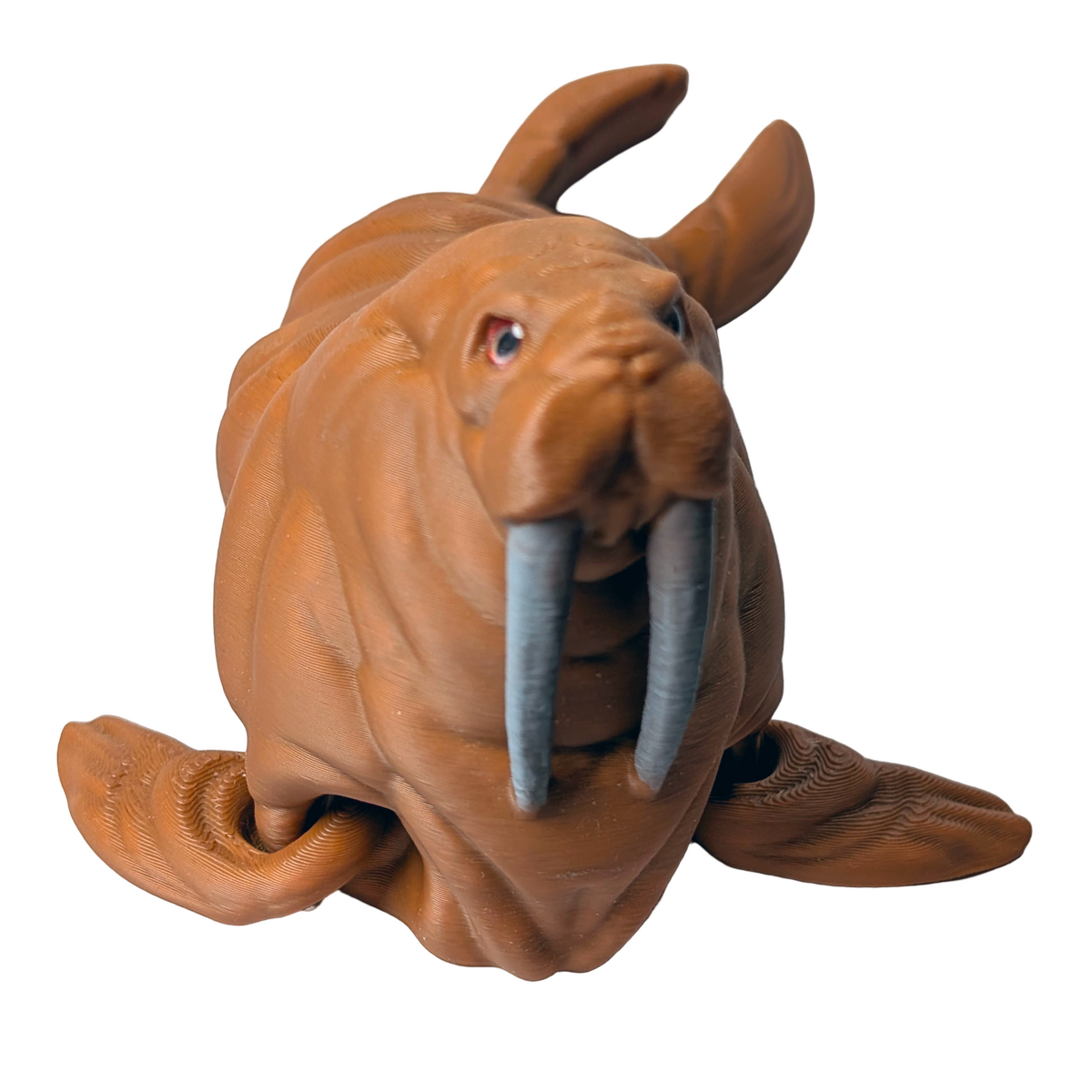 Sturdy, expressive, and full of personality, the Walrus Figurine brings a touch of wildlife charm to shelves and desks. Designed as a decorative display piece, it features a realistic walrus form with articulated joints that allow for gentle repositioning. 3D printed in PLA with a matte brown finish, each figurine is finished by hand and includes hand-painted details and carefully applied artificial eyes. A distinctive display piece for wildlife collections, desks, or gift giving.