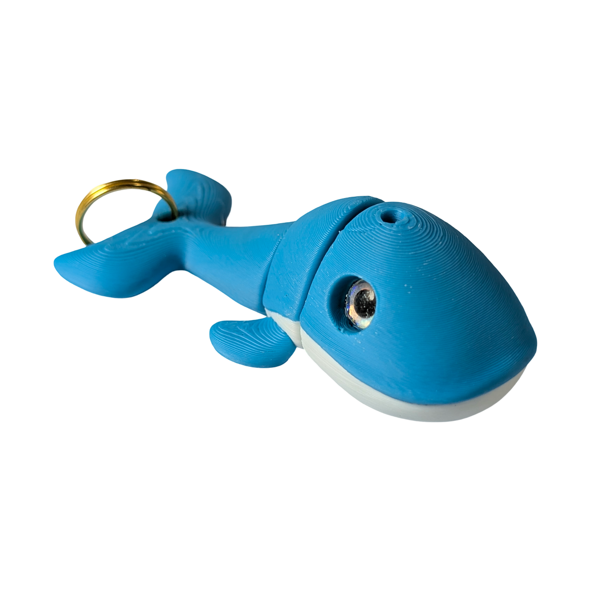 Big ocean vibes in a pocket-sized package . This articulated whale keyring and bag charm is 3D printed in multi-coloured matte PLA and finished with hand-applied eyes for extra personality. Lightweight and compact, it's an easy way to add a splash of marine life to your keys, backpack, or everyday bag. A calm little sea companion that's always happy to cruise along. From Australia.