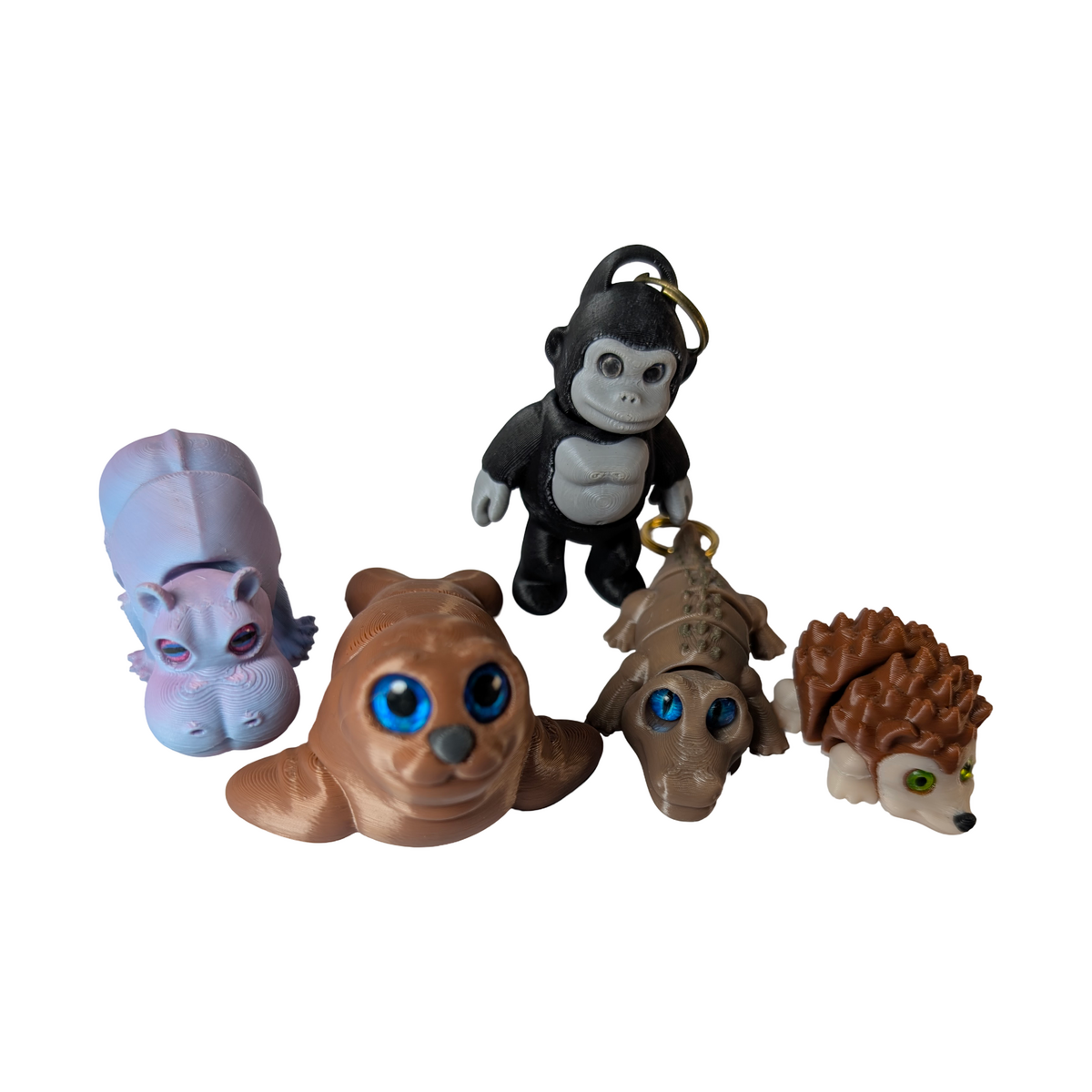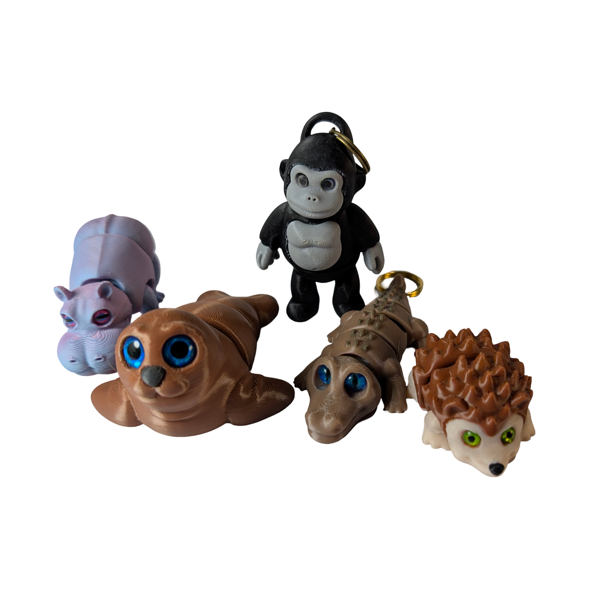This wildlife keyring and bag charm multi-pack brings together five specific animal designs in one varied and characterful set: Gorilla, Seal, Crocodile, Hippo, and Hedgehog. Each piece is 3D printed in multi-colour PLA with articulated details and hand-applied eyes, giving every animal its own distinct look. Supplied as a fixed set, so you know exactly which creatures are included-no mystery animals turning up unannounced.