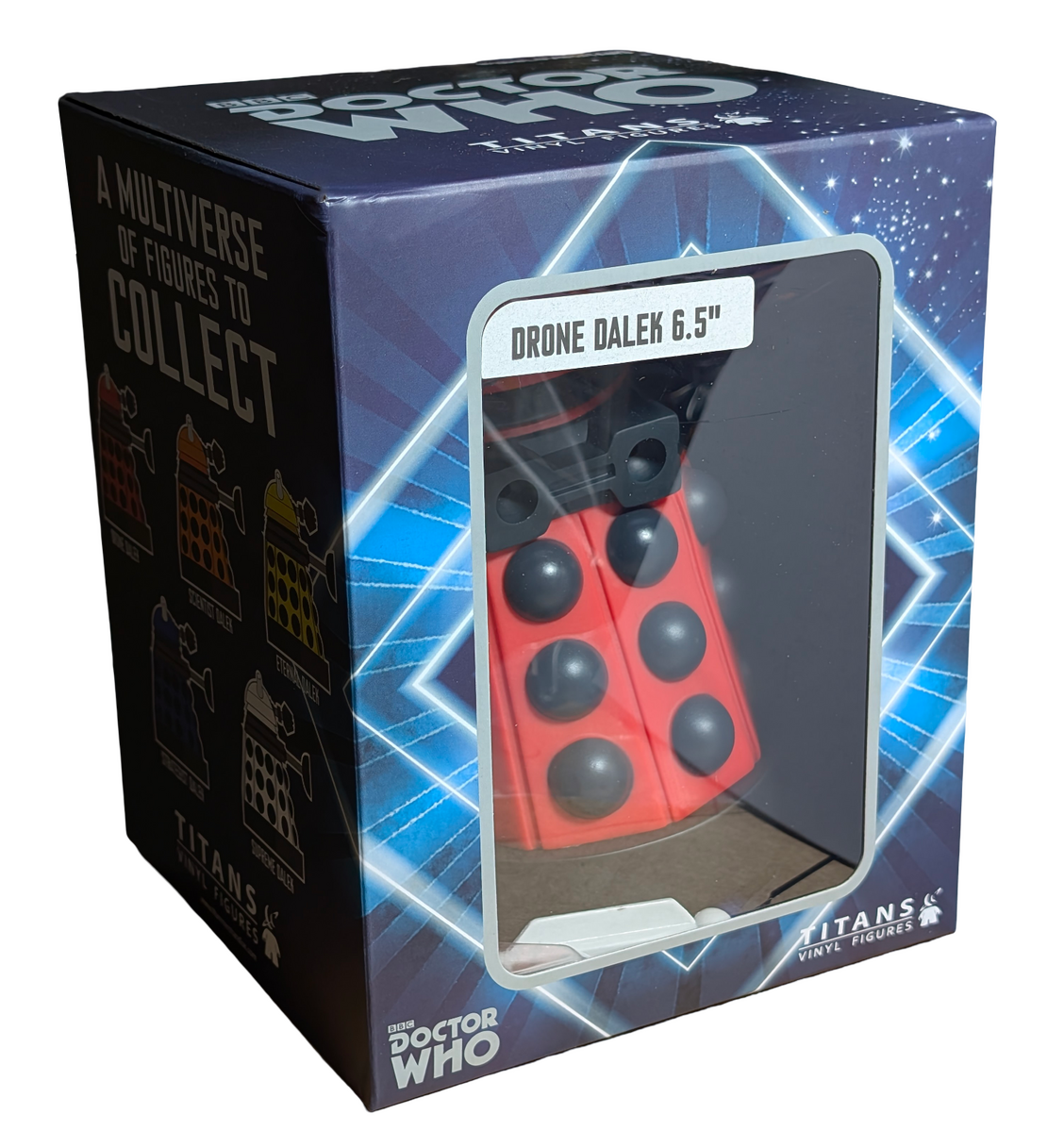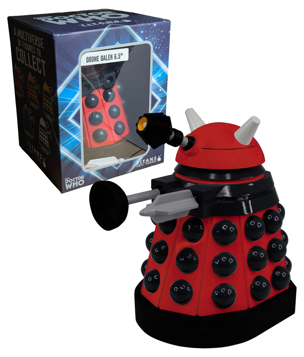 A solid addition for fans building out a themed collection. This Titans vinyl figure depicts a Drone Dalek from Doctor Who, presented in a 6.5 inch collectible format. Daleks are among the most recognisable villains in science-fiction television, known for their distinctive design and long-running role throughout the Doctor Who series. This red Drone Dalek reflects the New Paradigm Dalek style and suits shelf or cabinet display alongside other Doctor Who figures.